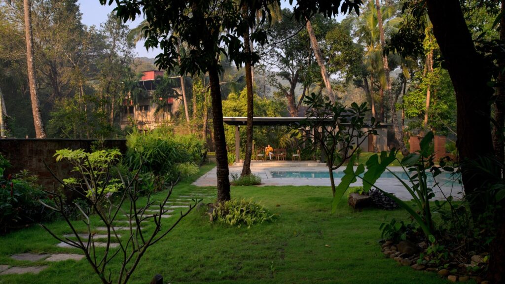 In Sawantwadi, where the Western Ghats meet a town suspended between memory and momentum, this home is conceived as an act of restraint, shaped to follow the land, invite the breeze, and frame the surrounding green without ever overpowering it.