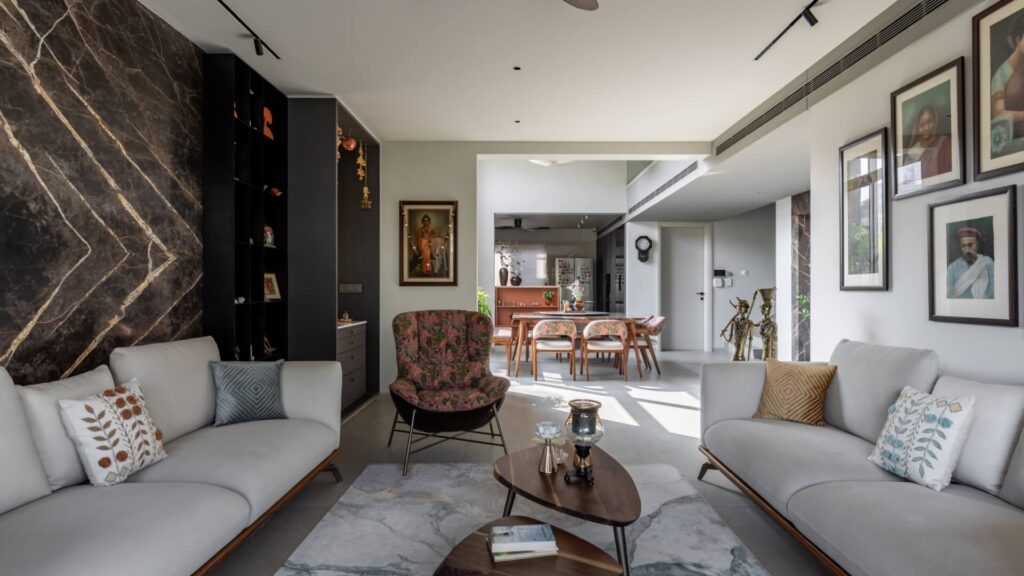 Material selection plays a strategic role in defining both the identity and performance of the Srujan project. Surfaces and finishes are conceived as design tools, supporting spatial clarity, visual continuity, and long-term usability.