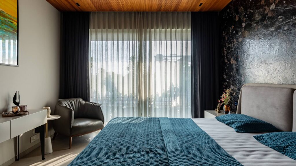 In the private residential zones, the palette becomes more expressive. Texture and color are introduced to reflect the individuality of the inhabitants and to enhance comfort in the most intimate spaces, particularly in the bedrooms. This shift allows the domestic areas to retain the project’s overall coherence while responding to emotional and personal needs.