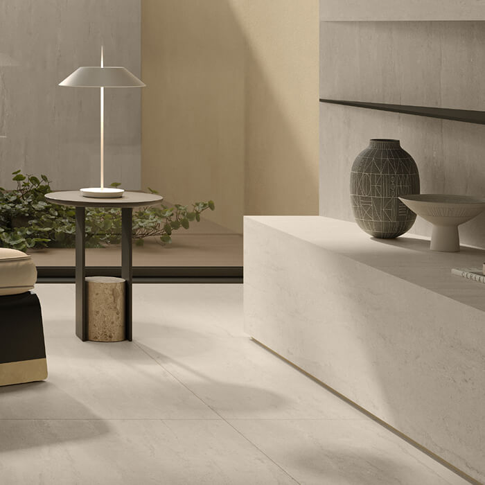 Warm and graceful, Travertine Crema reinterprets Italian tradition in a soft, contemporary palette. Its creamy base and hazelnut veins convey depth and harmony, blending natural authenticity with refined linearity for a timeless, elegant aesthetic.