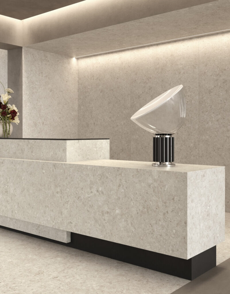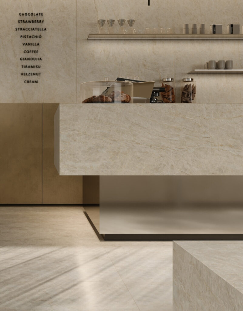 Here, the aesthetic potential of sintered marble becomes a design tool, one that enables refined, expressive, and enduring architectural spaces.