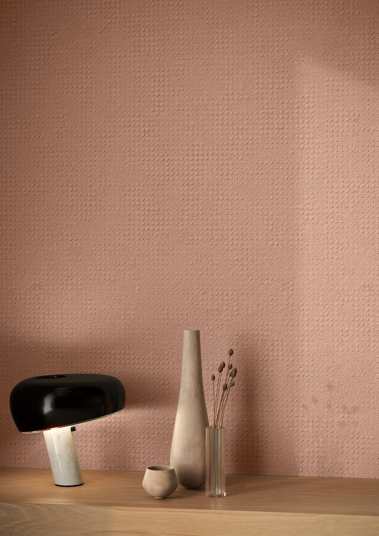 Punto Structure is crafted with an essential dot that lays the foundation for a minimalist composition of soft, rounded forms. On this basis, the initial motif repeats in three distinct layers of material depth, delivering a pattern with subtle organic nuances that respond gently to ambient light.